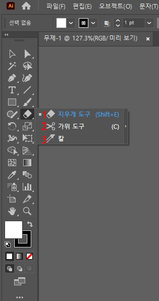 일러스트 지우개 도구를 길게 클릭하면