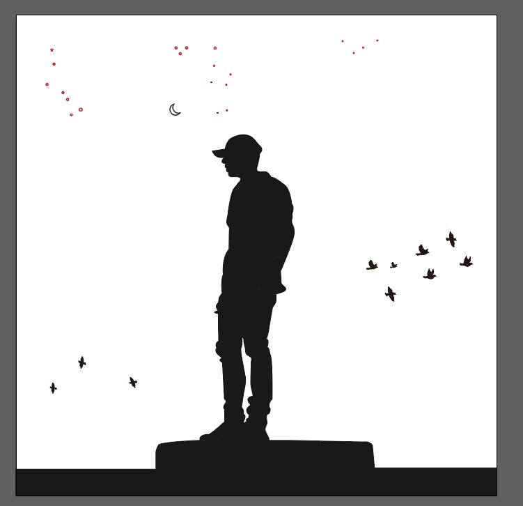 캔버스에 새와 달, 별 모양을