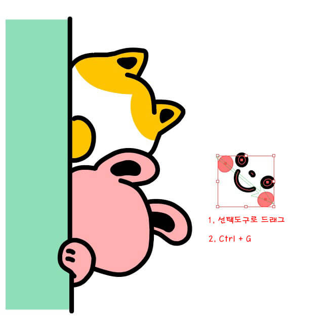 1. 선택 도구로 그룹을 지어줄 드래그한 다음,