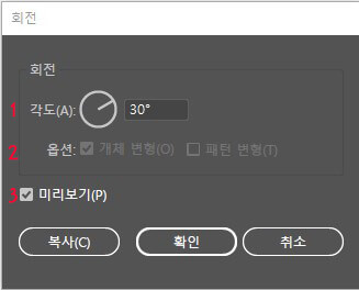 2.Options | 패턴을 적용한 경우 패턴도 함께 회전할 수 있습니다.