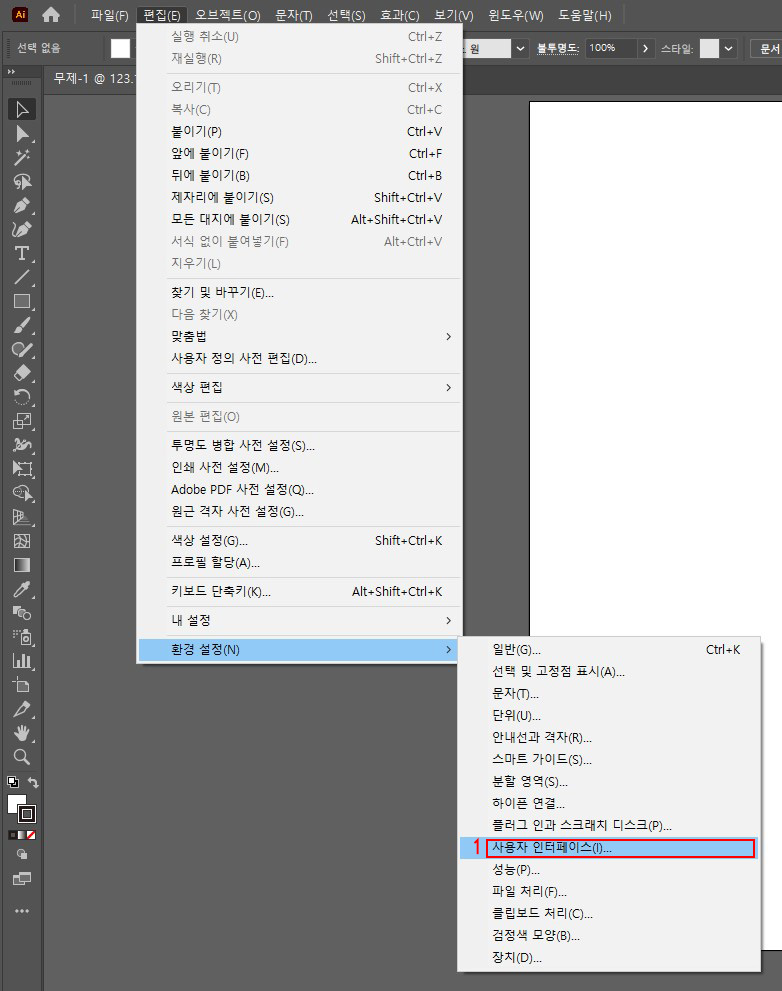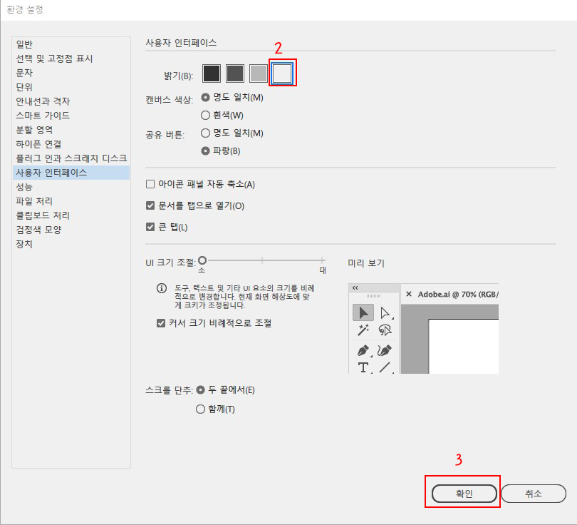 [preferences]-[User Interface] 메뉴를