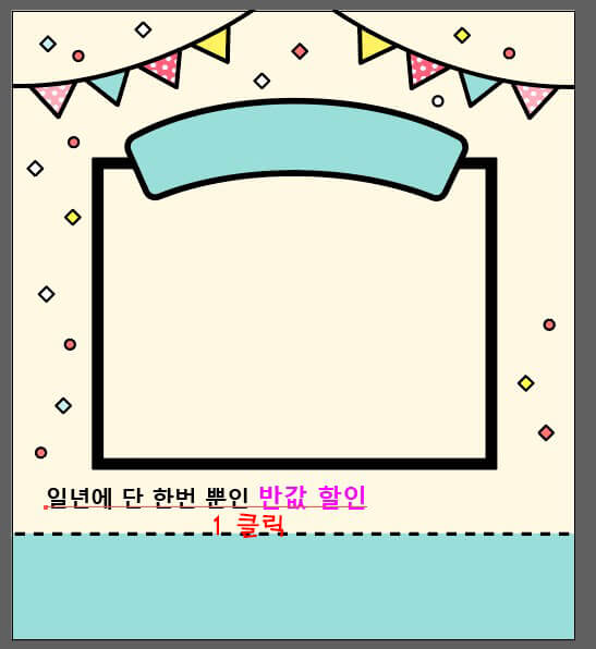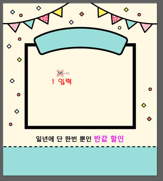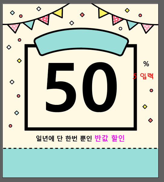"일 년에 단 한번뿐인 반값 할인"을 입력해 봅니다.