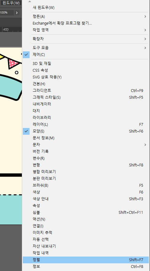 [윈도]-[정렬] 패널에서 종이 표시를 클릭하고