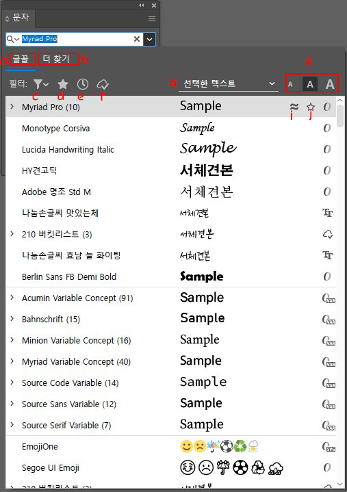 h. 글꼴 목록에 나타난 샘플 텍스트의