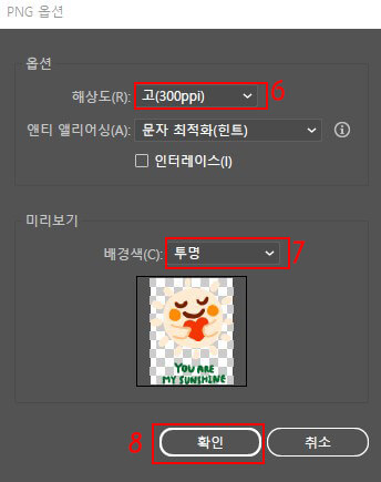 5. 적절한 크기를 설정하고 6. 파일 이름의