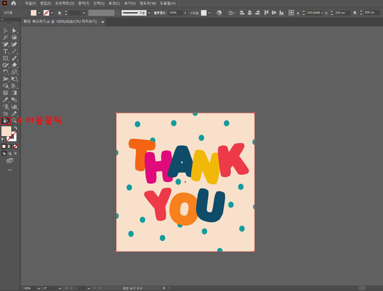 1. 도구바에서 돋보기 도구를 더블 클릭합니다.
