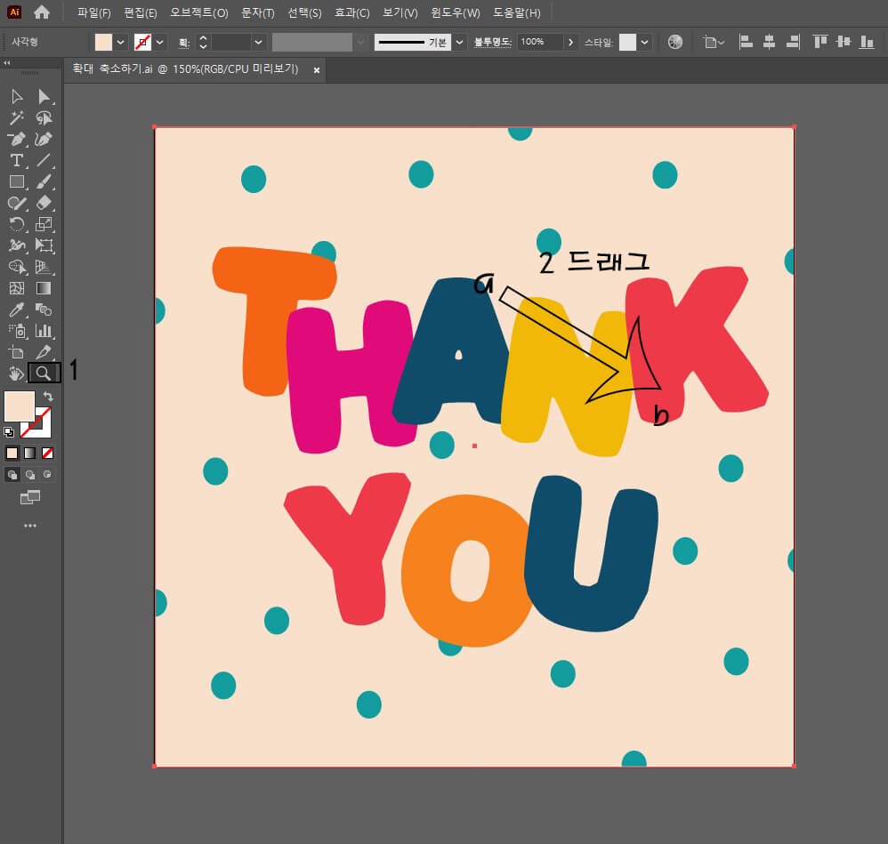 이번에는 아트보드의 크기를 확대하고 줄이며,