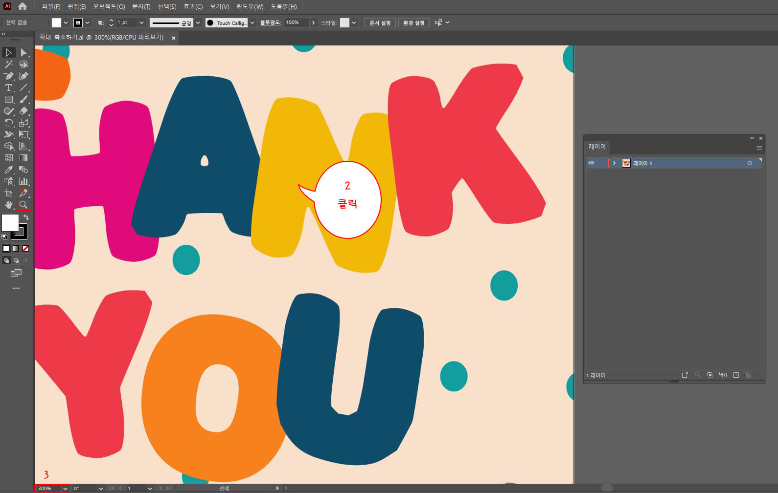 1. 도구바에서 돋보기 도구를 클릭합니다.