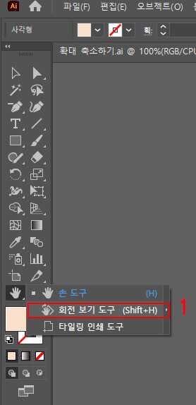 1. 도구바에서 손바닥 도구를 길게 클릭해
