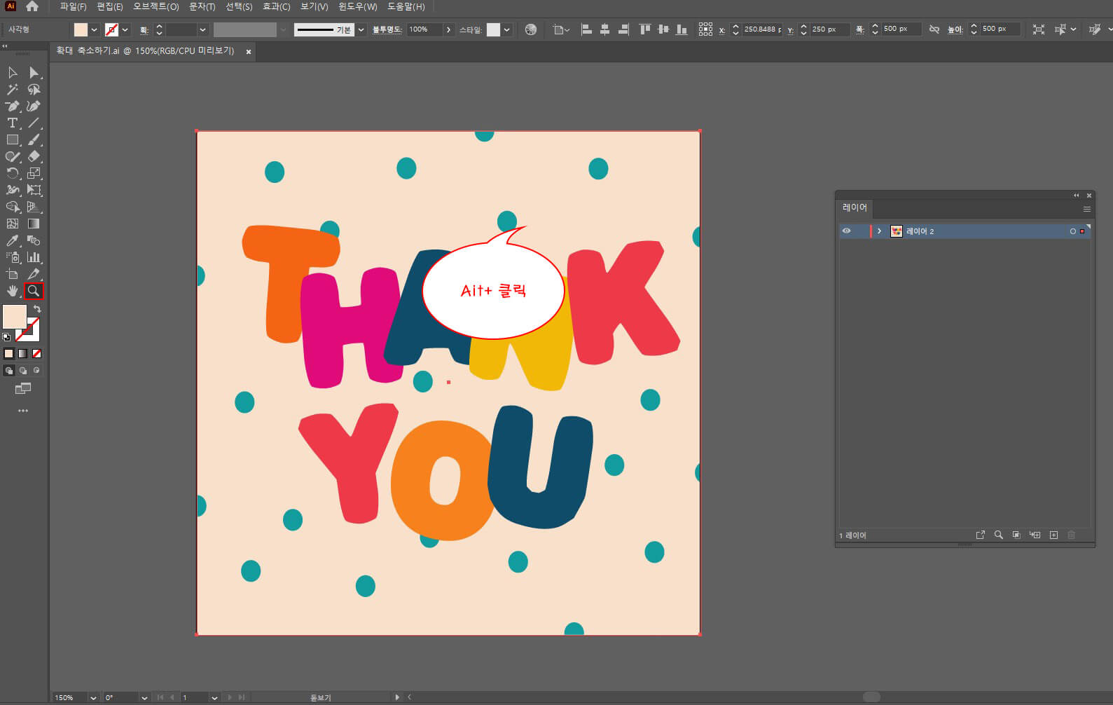 이번에는 아트보드의 크기를 확대하고 줄이며,