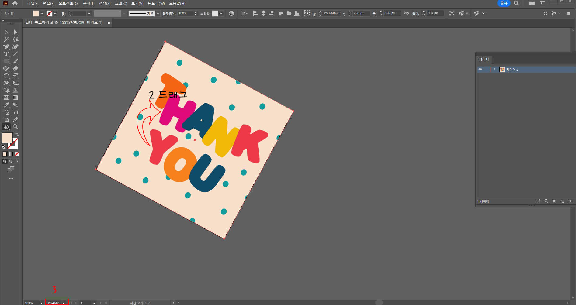2. 아트보드를 시계 방향으로 드래그하면