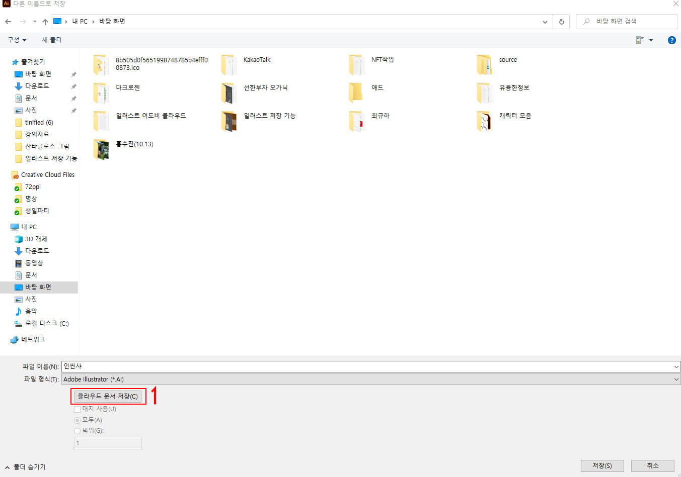 일러스트를 어도비 클라우드에 저장하는