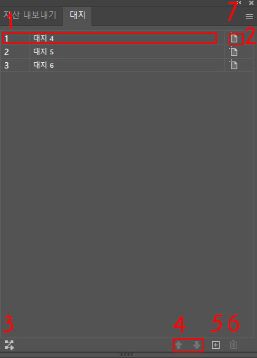 1.아트보드의 순서와 이름입니다.