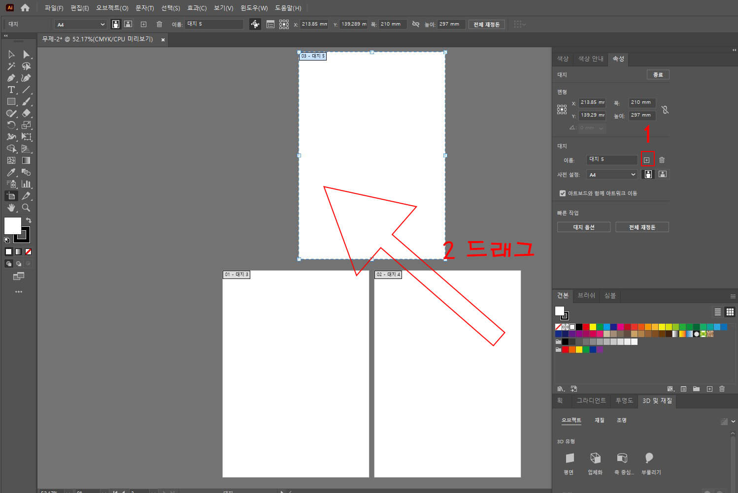 보겠습니다. 1. 오른쪽 아래에 있는 아트보드를