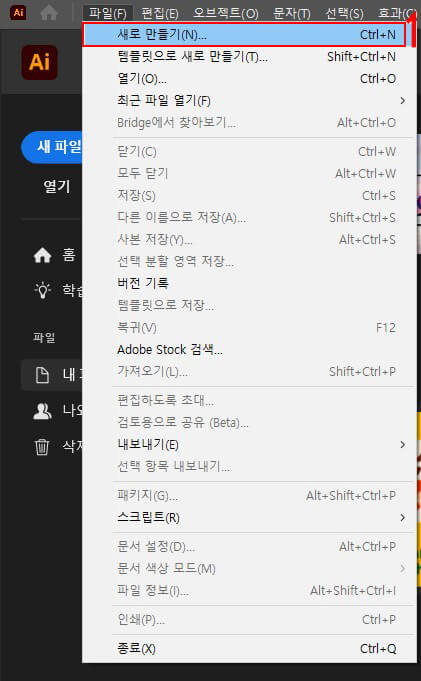1.[파일]-[새로만들기] Ctrl+N메뉴를