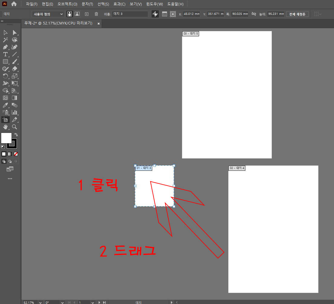 02 아트보드의 개수를 수정해보겠습니다.