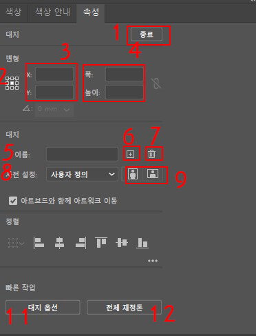 아트보드를 컨트롤할 수 있는 패널로