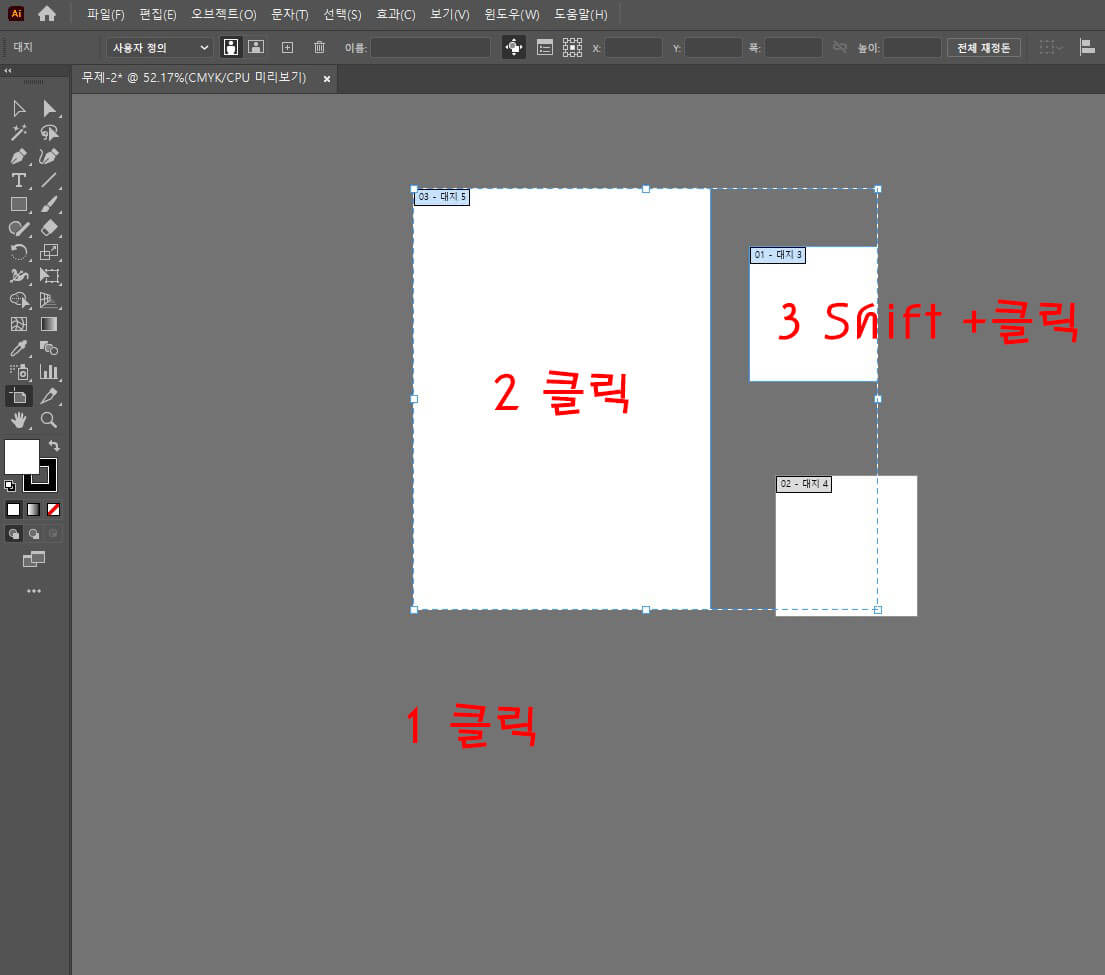 클릭하고 3.Shift를 누른 채 두 번째 아트보드를