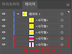 옮깁니다. 레이어 패널에서 화살표 방향을