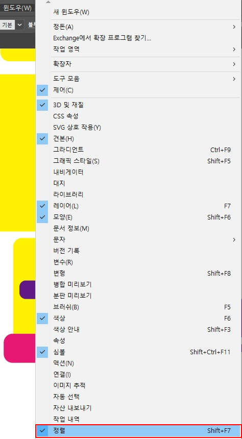 드래그하여 선택합니다.[윈도우]-[정렬]메뉴를
