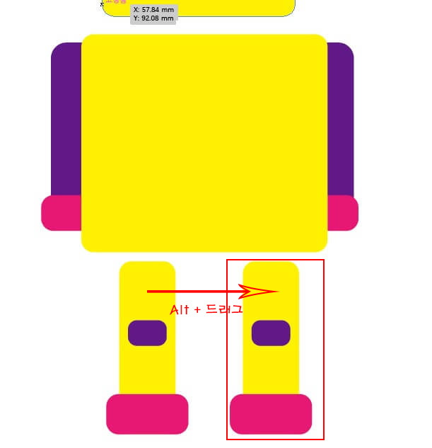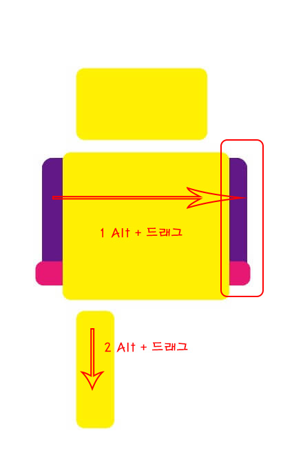모두 몸통 안으로 겹쳐지도록 드래그하여