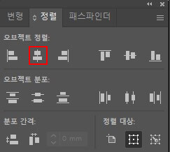 정렬 패널에서 세로 중심선 정렬을 클릭합니다.