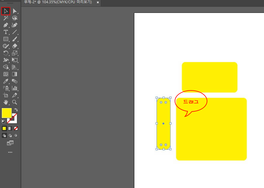 선택하고 앞서 그린 사각형 밑에 세로가 긴 사각형을 만듭니다.