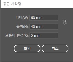 가로는 60mm 세로는 40mm 모퉁이 반경은