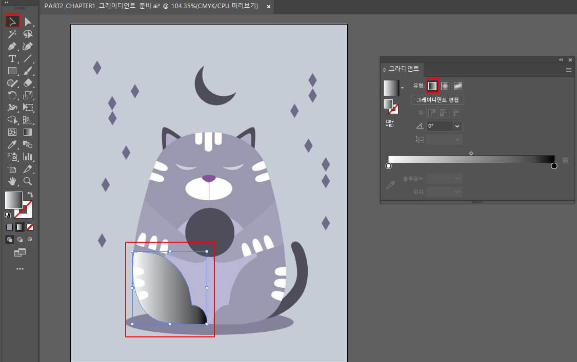 선택 툴로 고양이 배를 클릭하여 선택합니다.