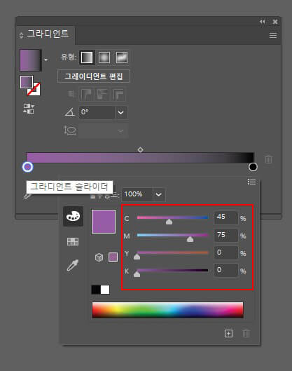 색상 패널에서 색을 C:45, M:75