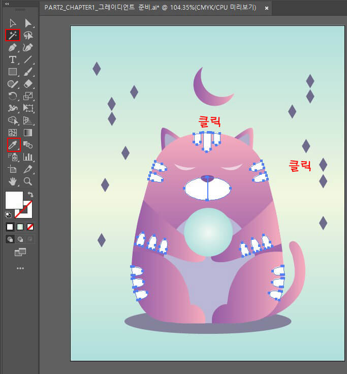 툴로 고양이 배를 클릭하여 배에 적용한