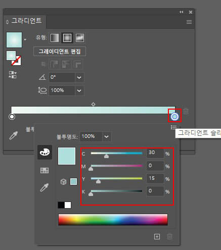 그라이디언트 패널의 컬러 칩 슬라이더
