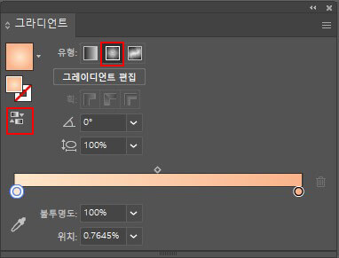그라이디언트 패널에서 타입을 [방사형]