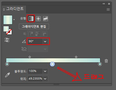 드래그하여 옮깁니다. 타입을 선형으로