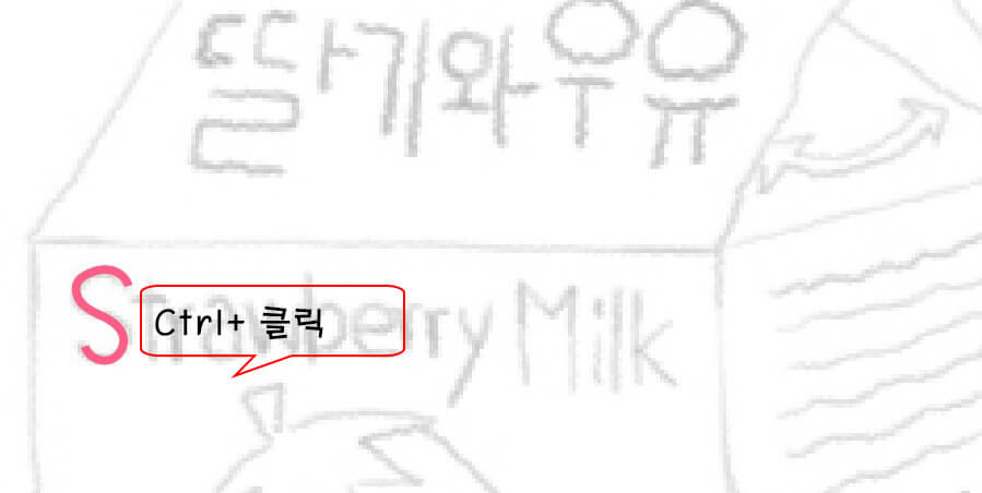 우유팩 앞면의 S를 드래그하여 그리고