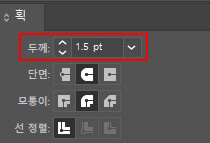획 패널에서 선 굵기를 1.5pt로 변경합니다.