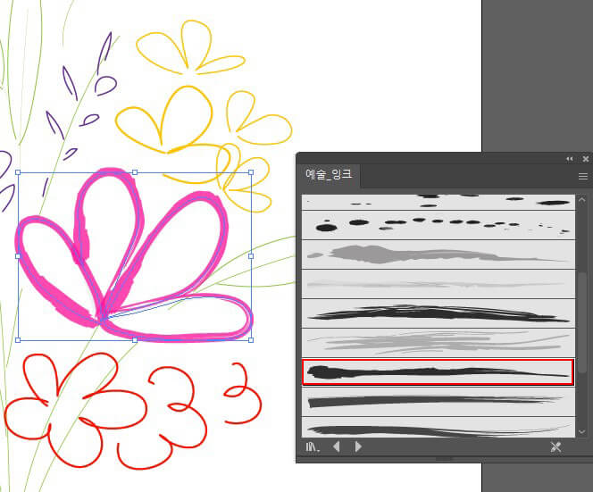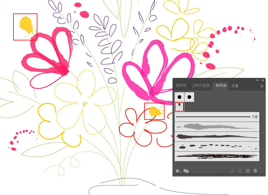 그린 꽃에 브러쉬 스타일이 적용됩니다.