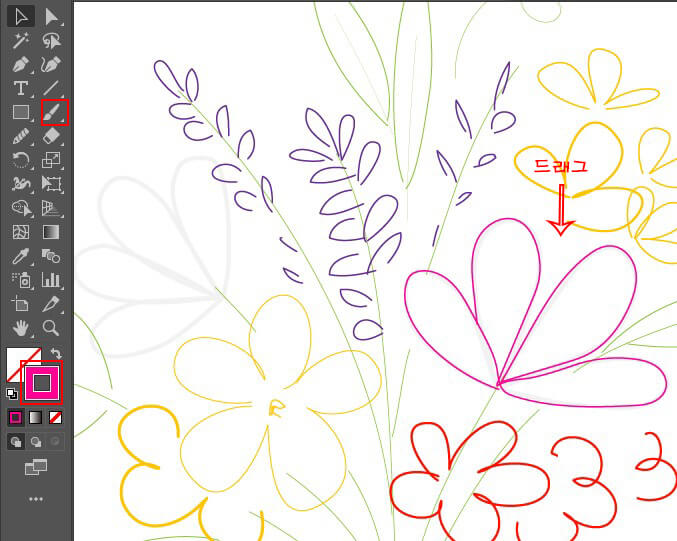 꽃 색이 변경되면 Ctrl을 누른 채 아트보드의