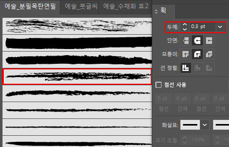 브러시를 선택합니다. 획 패널에서 선 굵기를
