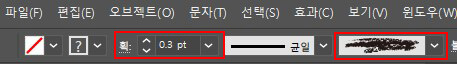 획 패널에서 선 굵기를 0.5pt로 설정합니다.