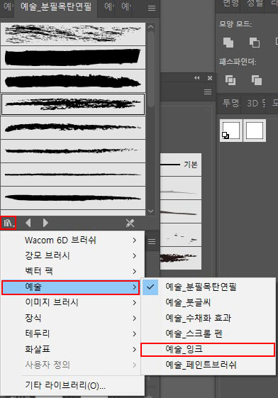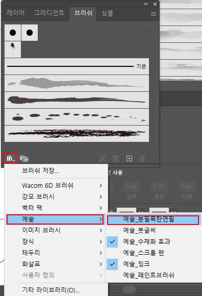 브러시 패널에서 브러시 라이브러리 메뉴를