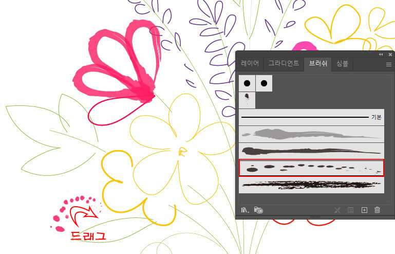 지금까지 일러스트 브러쉬 툴을 이용해서