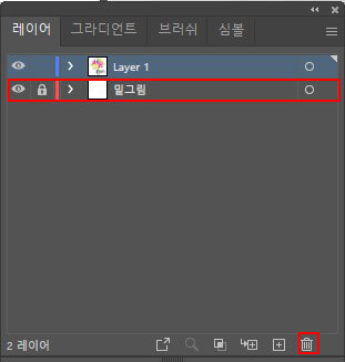 삭제를 클릭하여 밑그림을 삭제합니다.
