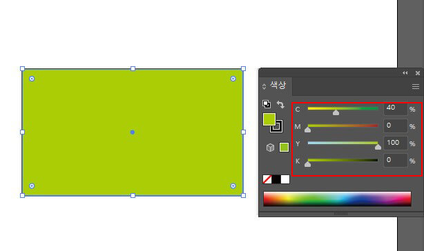 [면]만 활성화하고 연두색(C:40, M:0, Y:100, K:0)