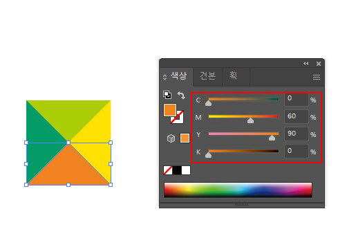 색상 패널에서 다음과 같이 색상을