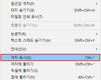 [보기]-[격자 표시] 메뉴를 클릭합니다.