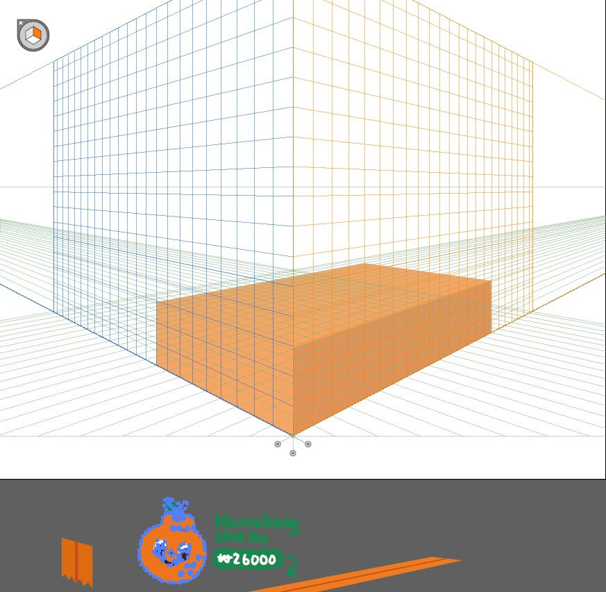 아트보드 안에 2점 투시 격자가 나타납니다.
