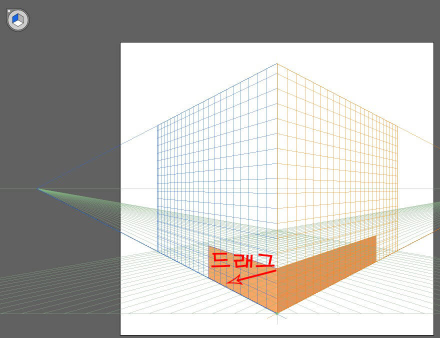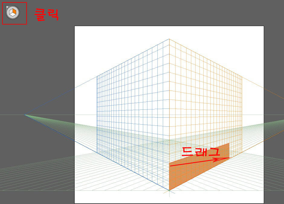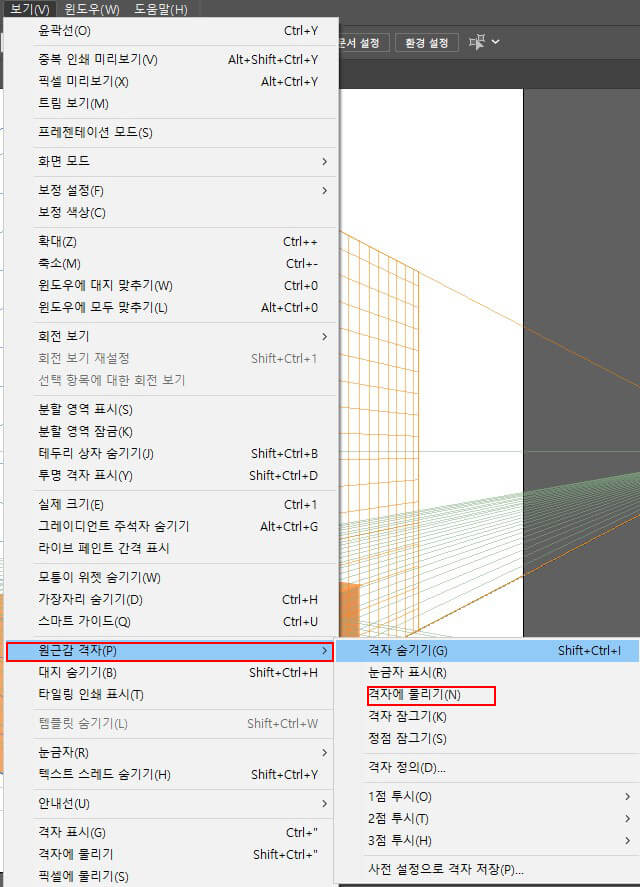 메뉴를 선택합니다. 2점 투시 격자가 사라집니다.