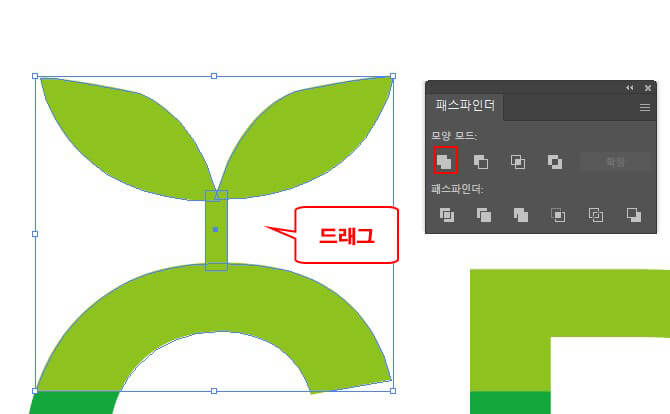 11 선택 툴을 선택해 두 잎사귀가 G 위에
