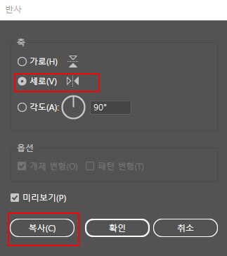 클릭합니다. 반사 창에서 [세로]를 선택하고